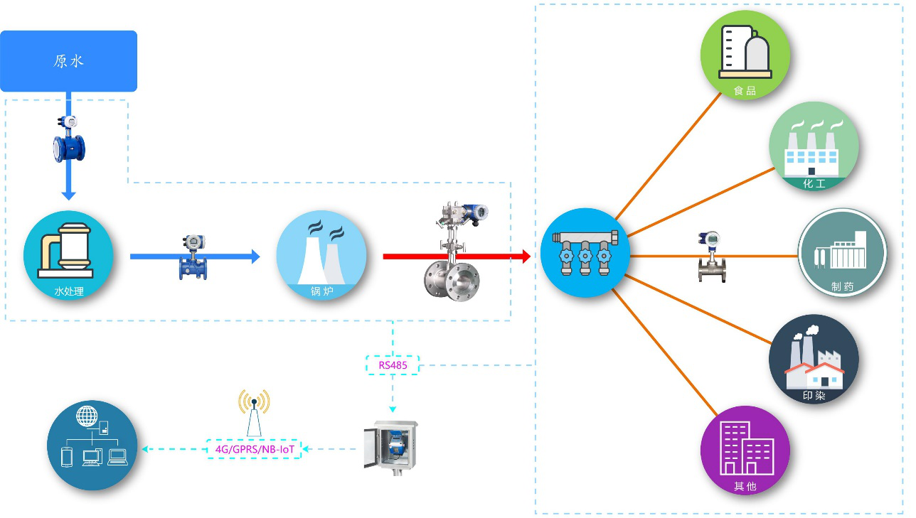 工廠使用的蒸汽大部分是經(jīng)過降溫減壓處理后的飽和蒸汽,在各個工藝環(huán)節(jié),所選的儀表絕大部分為渦街流量計。渦街流量計可以同時進行蒸汽溫度、壓力等數(shù)據(jù)的采集,通過溫壓補償,大幅度提高蒸汽計量的準確性,非常適合用于監(jiān)控現(xiàn)場用汽狀態(tài)。個別場合也會應(yīng)用節(jié)流裝置。